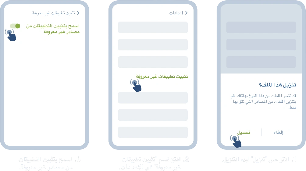 - في الإصدارات الحديثة، يتم السماح بالتثبيت للتطبيق أو المتصفح المستخدم.
