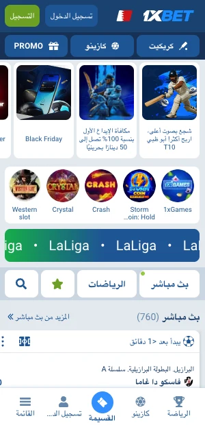 يوفر الوصول إلى خطوط المراهنة والأحداث الحية والكازينوهات والأقسام التي تبث بثًا مباشرًا. جميع الإحصائيات وسجل المراهنات في متناول يدك، مما يبسط التحليل واختيار السوق.